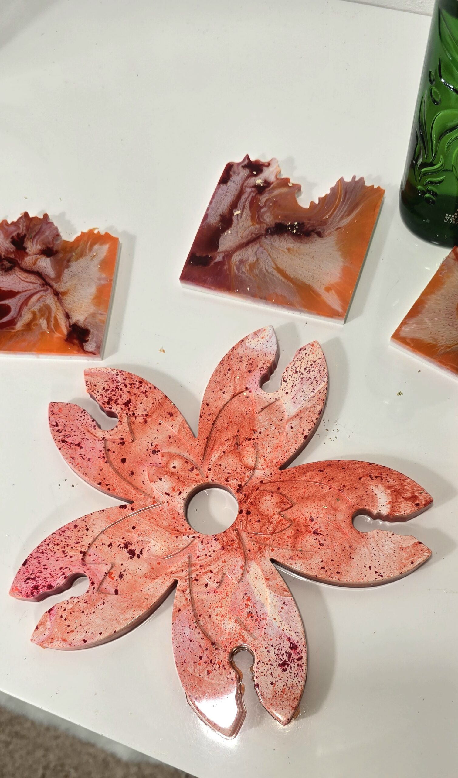 4 Reds & White Bronze foiled Coasters (matching items available matches MAX0077)