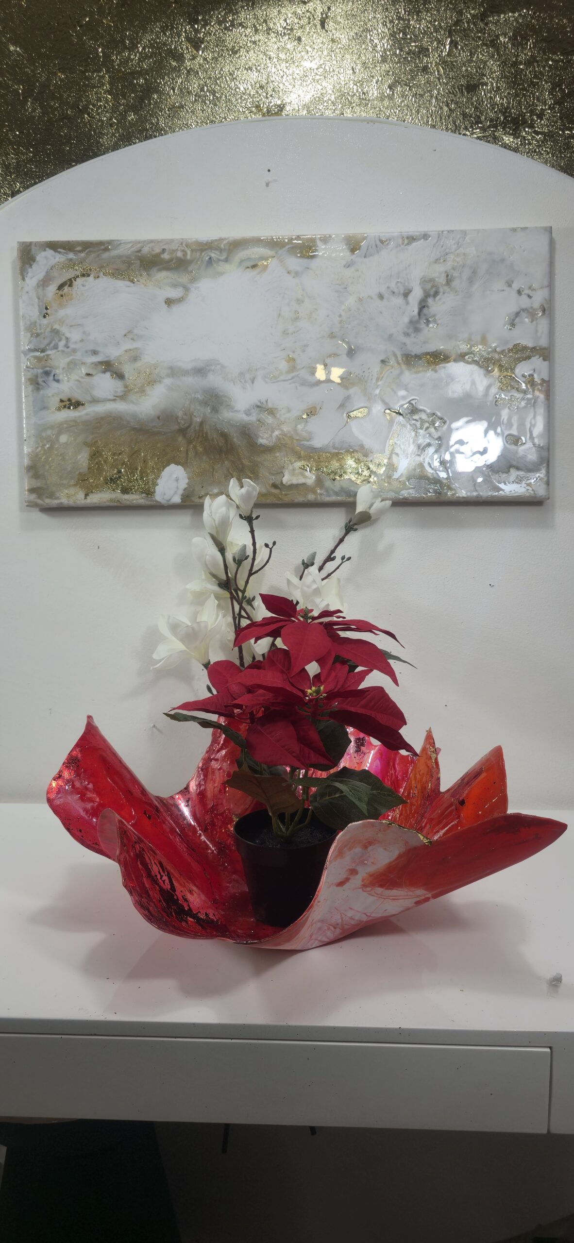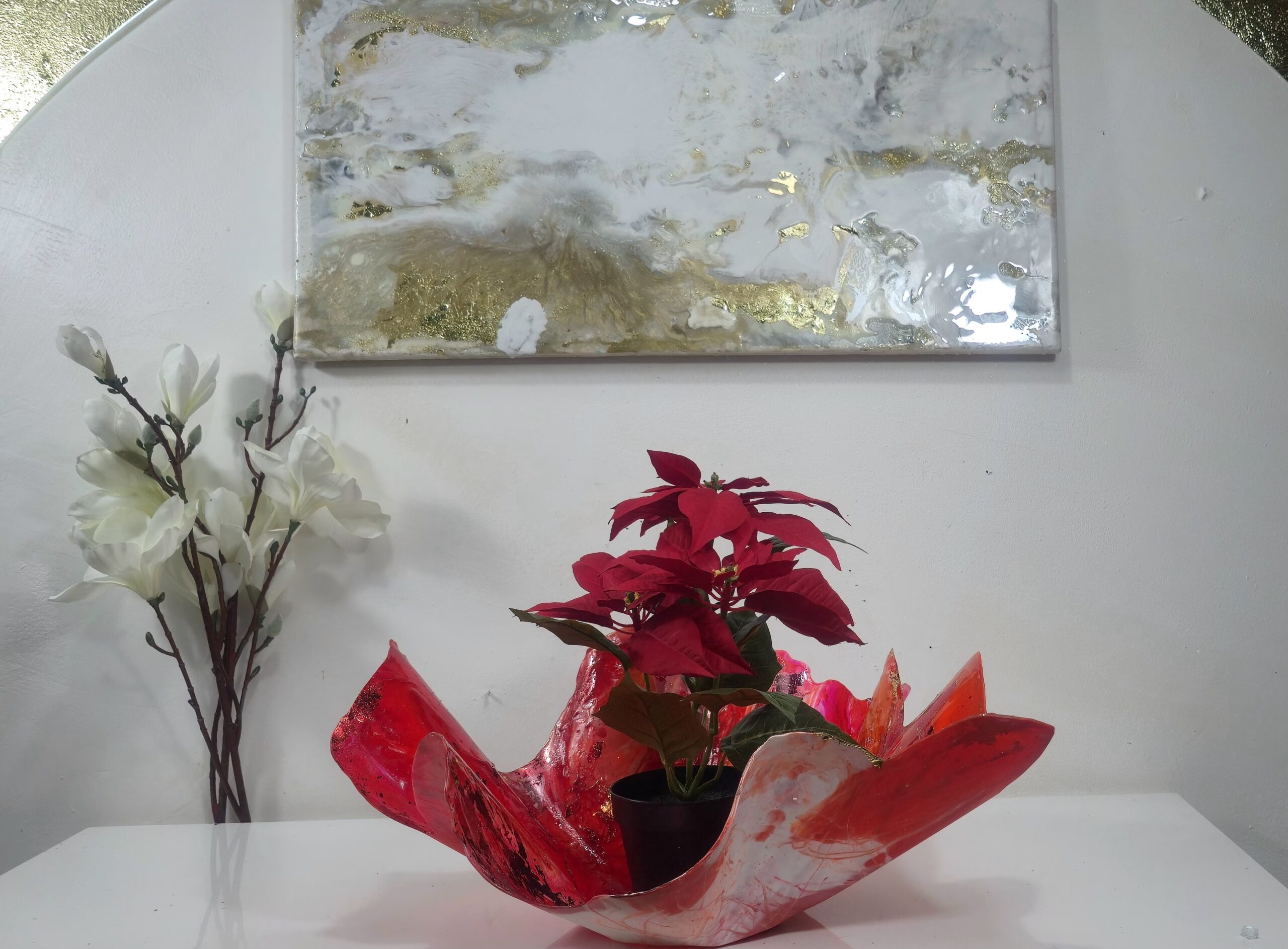 RED PETAL BOWL LARGE WITH METAL PINK & RED FOIL