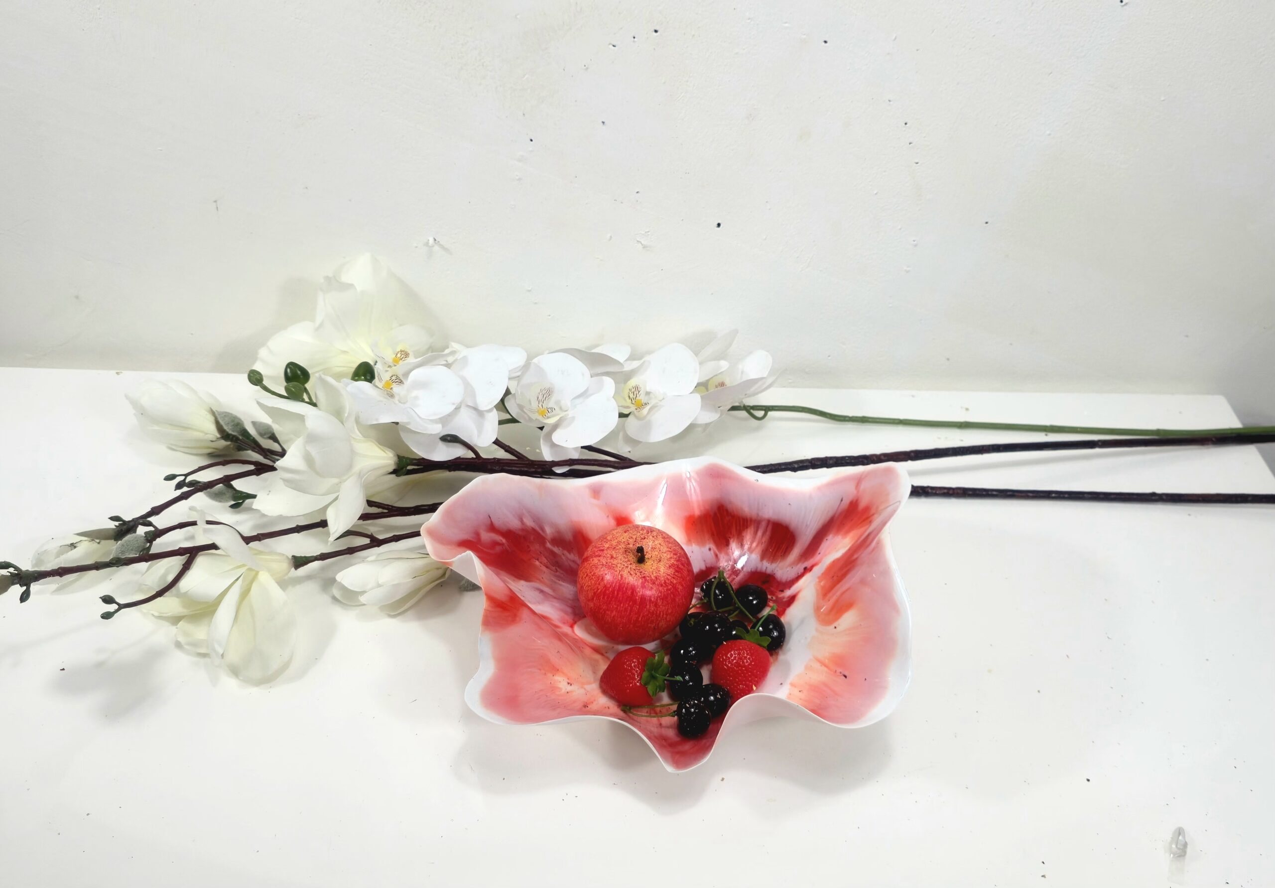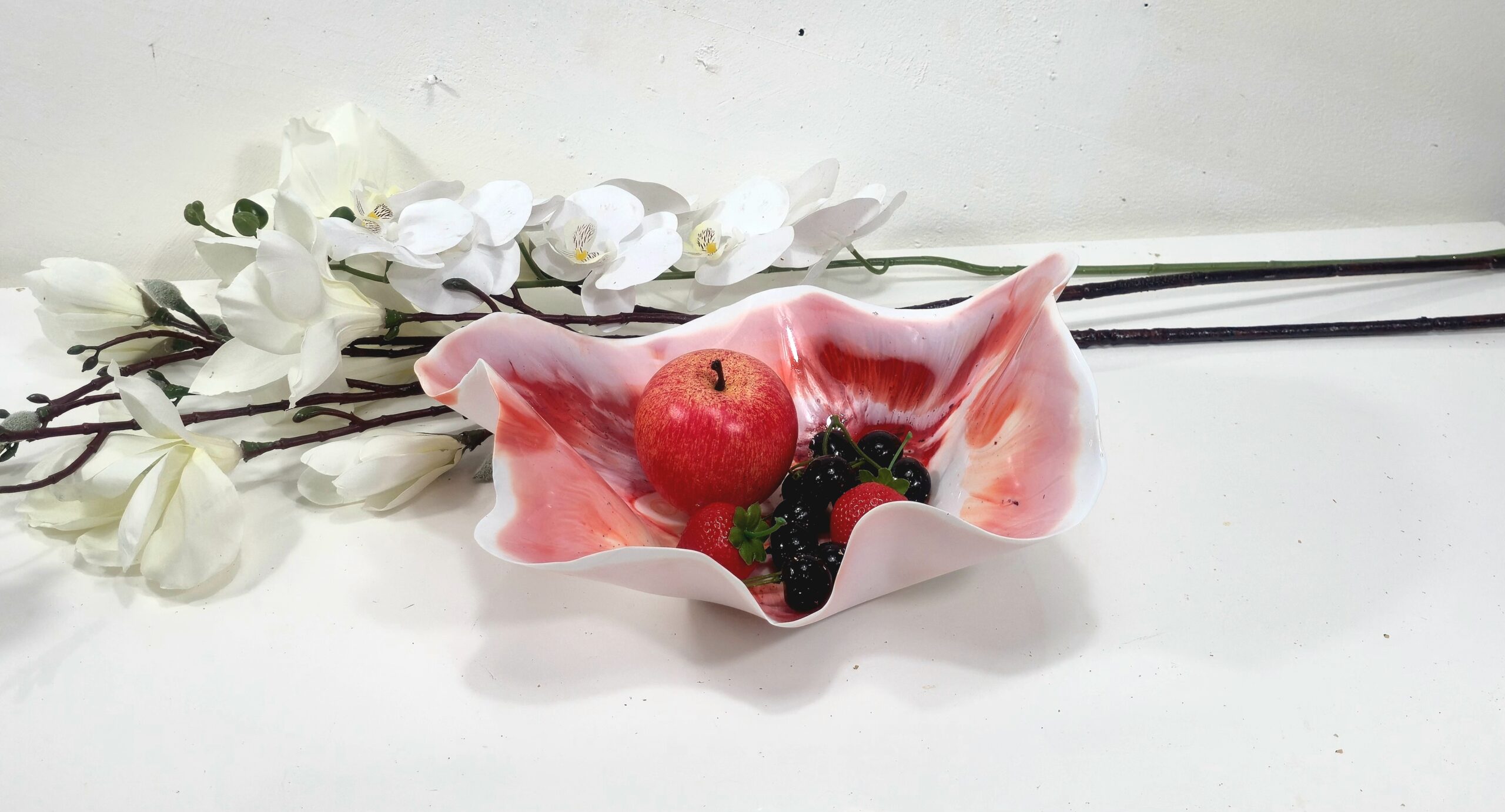 SHALLOW SMALL RED/WHITE FRUIT BOWL