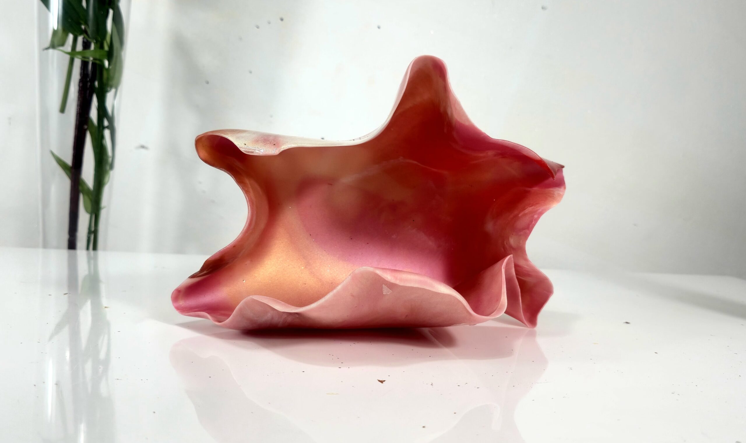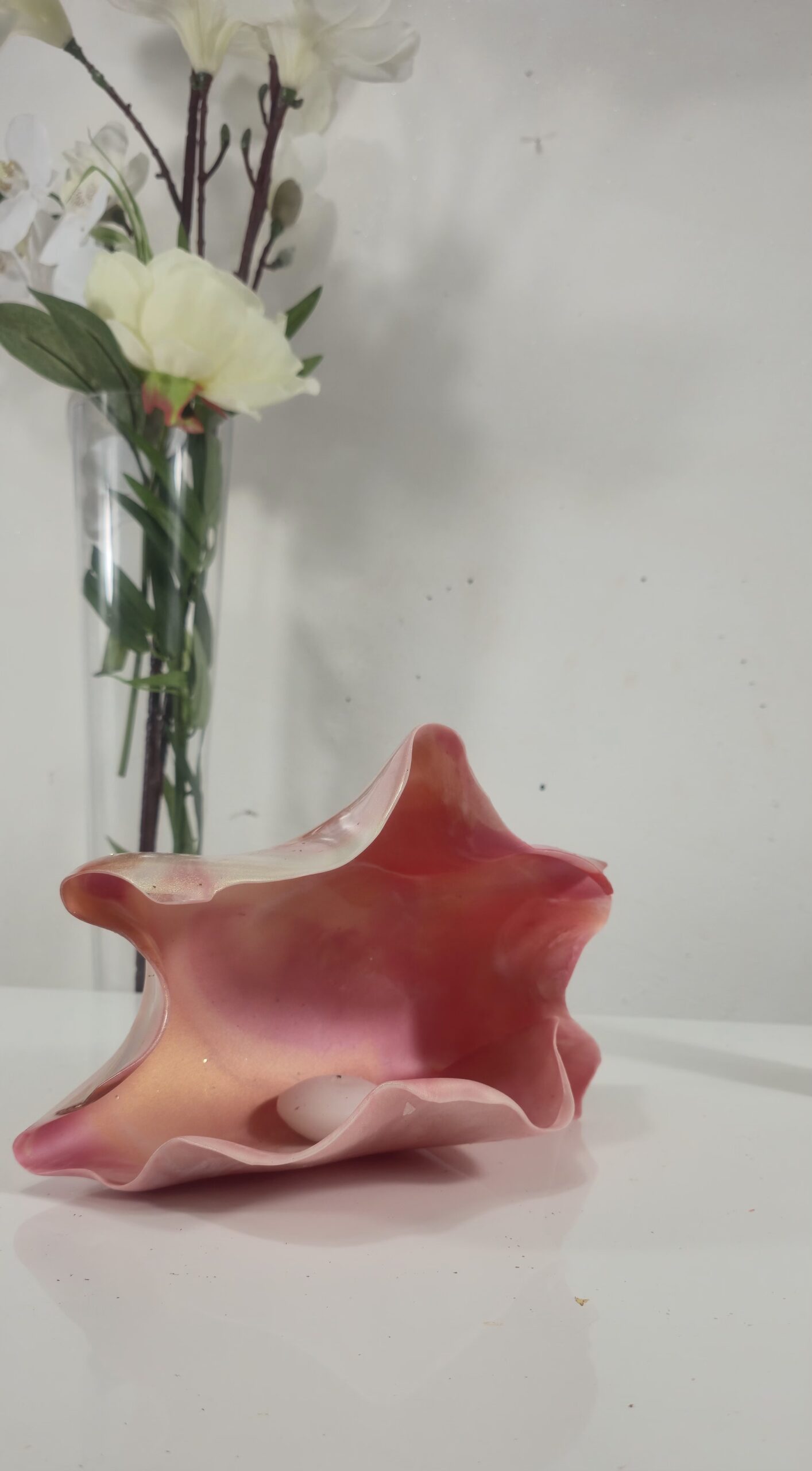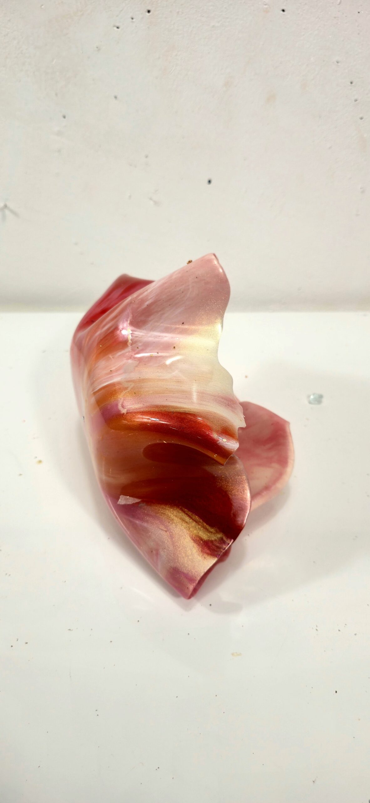 A beautiful soft pinks and light red clam shell is a delightful small led candle holder or why not display your favourite jewellery on your dressing table? The pinks are slightly pearlised in colour inside the shell which reflects the candle light beautifully. With the addition of a faux pearl inside this piece will delight all who see it.